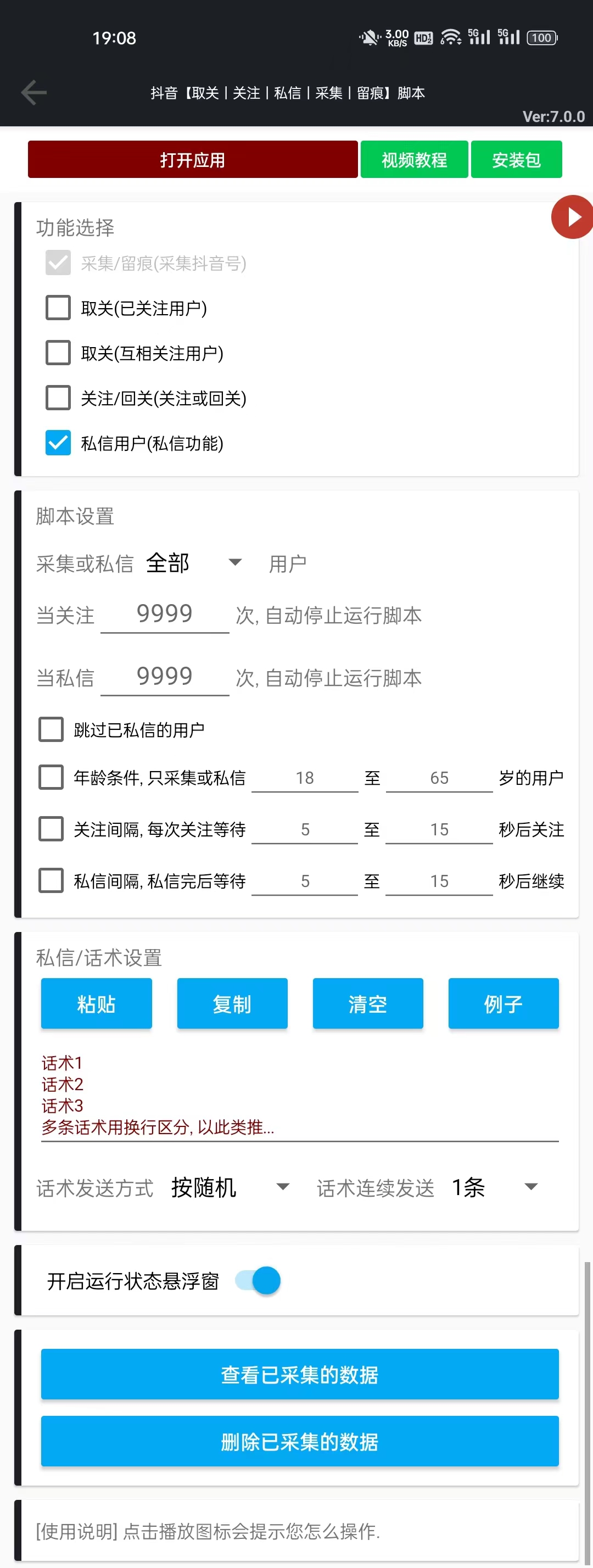 「可试用」抖音【粉丝丨关注丨私信丨采集】脚本v22.7.21
